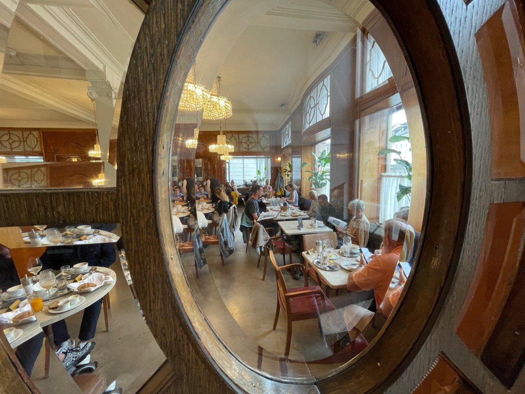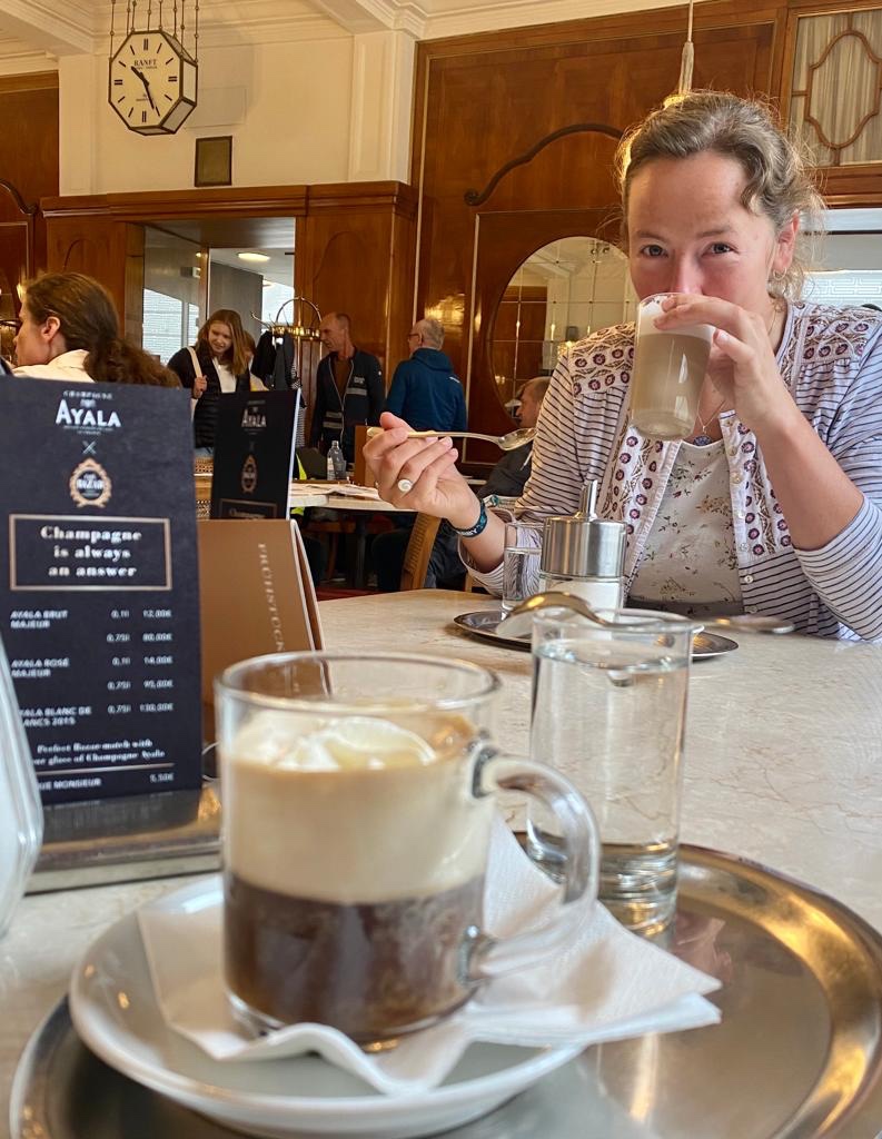 Kaffee mit Schlagobers (Sahne) oder ohne? Weder noch, einfach nur einen Café Latte, sage ich zum Kellner und bestelle noch zwei weiche Eier mit einer Buttersalzstangerl. Wir hocken im Café Bazar, ein Kaffeehaus mit Kronleuchtern, Holzvertäfelung und einer langer Tradition. 1882 wurden schon die ersten Kaffees ausgeschenkt, zum Beispiel ein sogenannter „Einspänner“. Das ist ein doppelter Espresso, verlängert mit Wasser und Sahnehäubchen. Ganz wichtig: serviert in einer Tasse mit Henkel. Ein Überbleibsel aus längst vergangenen Zeiten. Früher gönnten sich viele Kutscher einen „Einspänner“. In der einen Hand die Zügel, in der anderen die Kaffeetasse. Clever!