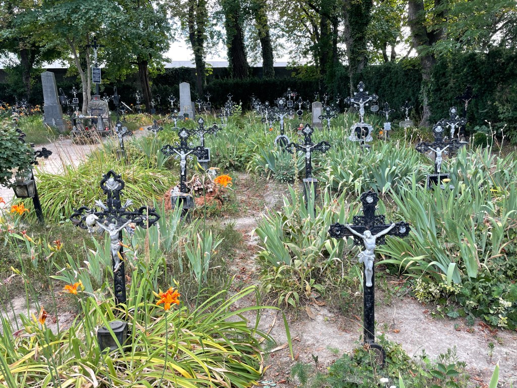 Nach vier Stunden Tellerwaschen raus aus der Küche und ab auf die Straße – mit Sack und Pack. Was mache ich denn jetzt? Sisi-Tour im Schloss Schönbrunn oder Friedhof der Namenlosen, ein „Tipp“ von Gudrun. „Der Tod, das muss ein Wiener sein“ heißt es doch im Lied von Georg Kreisler und Topsy Küppers. Ich lasse also die Wiener Prunkbauten hinter mir und folge dem Donaukanal in Richtung Süden. Nach dem Tierkrematorium bin ich fast da. Auf dem Friedhof der Namenlosen im Bezirksteil Albern (im Ernst) sind Menschen begraben, die die Donau zwischen 1840 und 1940 angeschwemmt hat. Dutzende Kreuze, Unkraut, verwitterte Teddybären. Bedrückend die Tafeln mit der Aufschrift „Unbekannt“ oder „Namenlos“ zu lesen. Noch bedrückender sich vorzustellen, wie es dazu gekommen ist. Ich drehe mich um und entdecke ein in Stein gemeißeltes Gedicht: „Still ist‘s in den weiten Auen. Selbst die Donau ihre blauen Wogen hemmt. Denn sie schlafen hier gemeinsam, die die Fluten still und einsam angeschwemmt. Alle, die sich gesellen, trieb Verzweiflung in der Wellen kalten Schoß […].“ Schwere Kost für eine Frohnatur. Bereue den Besuch aber nicht. Auch dieser Ort gehört zu Wien.