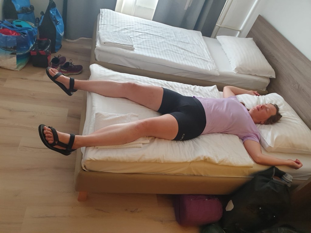 Slowenien begrüßt uns mit einer 16-prozentigen Steigung. Halleluja. Schweißtropfen kullern sekündlich runter. Der Asphalt kocht. Der restliche Weg führt an der Autobahn entlang, danach durchs Industriegebiet. Wir werden immer langsamer und träger. Die Hitze macht ganz matschig. Unsere Oase in der Wüste: zwei Nächte in einem Hostel in Maribor, Sloweniens zweitgrößter Stadt. Ein frisches Handtuch, Steckdosen, ein Bett! Wir sind im Himmel!