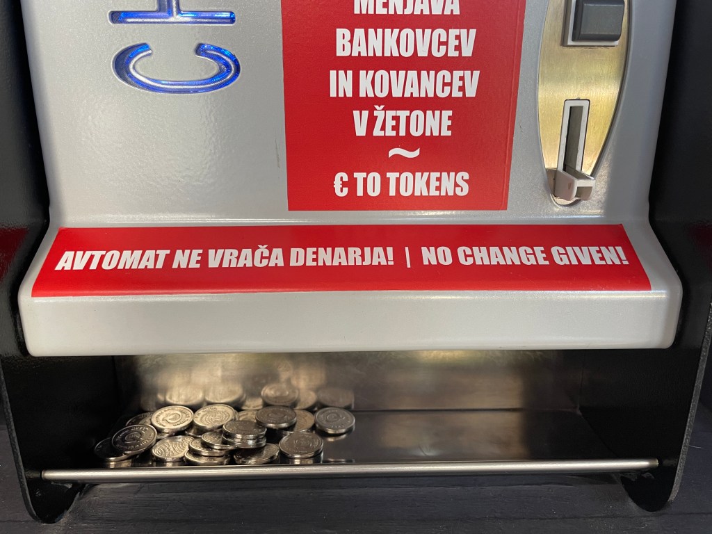 Beim Thema Dreckwäsche ist dann wieder mehr Eigenleistung gefragt. Meine Bike-Kluft stinkt und hat diverse Essensflecken. Unterwäsche wird auch knapp. Im Hostel gibt es leider keine Waschmaschine. Der einzige Waschsalon in Maribor ist rund vier Kilometer entfernt. Ich leere eine Radtasche und kutschiere das Gefahrengut durch die City. Die Maschinen im Salon „Speed Queen“ haben nur darauf gewartet. Um Waschmarken zu bekommen, muss ich meinen Zwanzi durch eine Wechselmaschine jagen. Lauter Coins kullern herunter. Wie auf dem Jahrmarkt. Aber nix Gewinne, Gewinne, ich Dummerchen, nur Verluste. Das Gerät spuckt kein Wechselgeld aus, steht da ja auch. Nach zehn Minuten fällt ein Engelchen vom Himmel. Eine Dame betritt den Salon. Ich sage, dass ich total stupid bin und zeige auf die silbrigen Jetons. Es stellt sich heraus, dass sie die Mutter des Waschsalon-Betreibers ist. Sie nimmt die Coins entgegen und tauscht sie in Münzen um. Was für eine Glückssträhne!