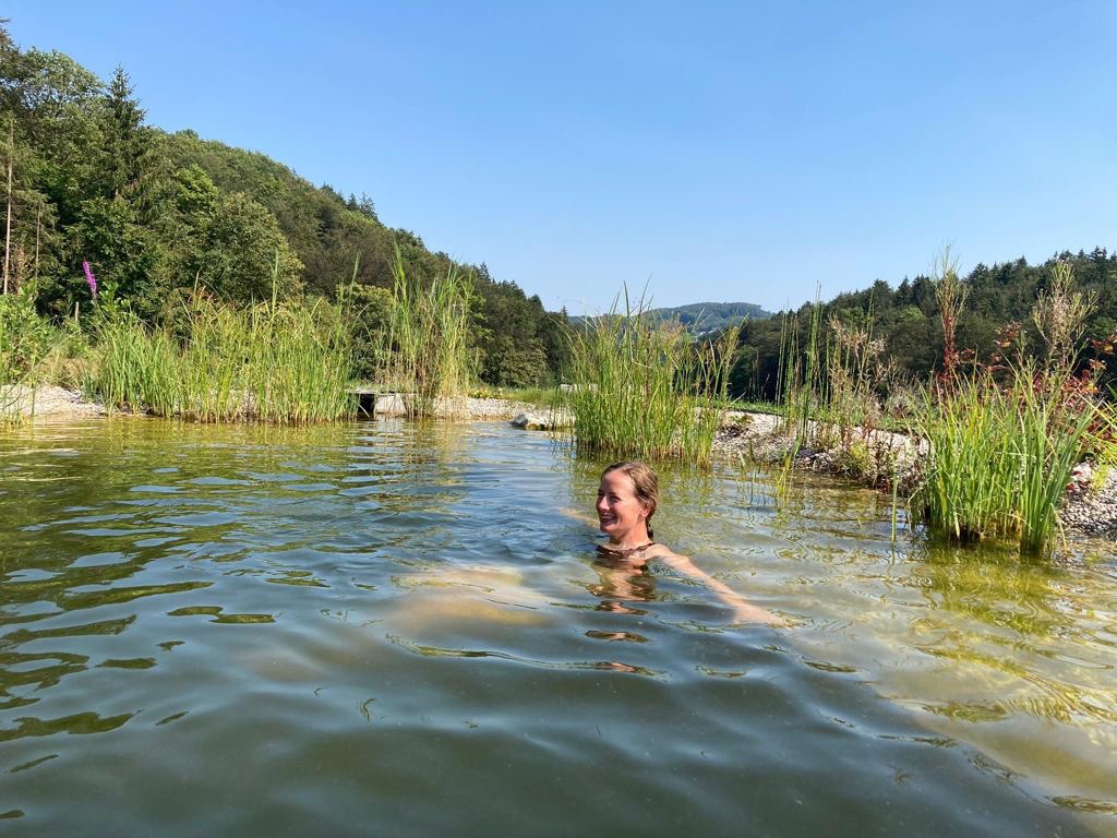 Wo gedeihen Trauben und Tomaten, baumeln bunte Hängematten und schnorcheln Kinder in einem Naturteich? In Ponikva. 100% slowenische Pampa. Wunderschönes Irgendwo. Zwischen Maribor und Ljublijana. Die App „Park4Night“ hat uns hierher geführt. Die Gastgeber leben in einem alten Bauernhaus mit dunklen Balken, die leider nicht sprechen können, aber bestimmt viel zu erzählen hätten.