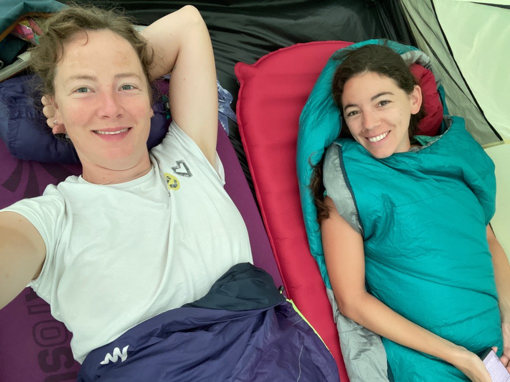 Wir schwitzen tagsüber so viel, dass es ohne Dusche nicht geht. Wohlbefinden first, Wildcampen-Wollen second. Um ein lauschiges Plätzchen zu finden, zapfen wir verschiedene Kanäle an. Zum Beispiel die Plattform „Warmshowers“. Begeisterte Radler nehmen begeisterte Radler bei sich auf. Ohne Cash. Und sehr spontan. Doch manchmal sind die Biker selbst auf Tour oder antworten nicht. Dann suchen wir weiter über die App „Park4Night“. Da sind sehr viele Stellplätze für WoMos drin, aber auch Campingplätze und Bauernhöfe mit Wiesen für Zelte. Wir buchen nie etwas im Voraus (das geht meistens auch nicht), sondern fahren spontan hin. Hat bisher immer geklappt. In Städten greifen wir auf billige Hostels zurück. Da können wir auch unsere Klamotten wieder waschen und alles auffüllen: Shampoo, Sonnencreme, Zahnpasta…