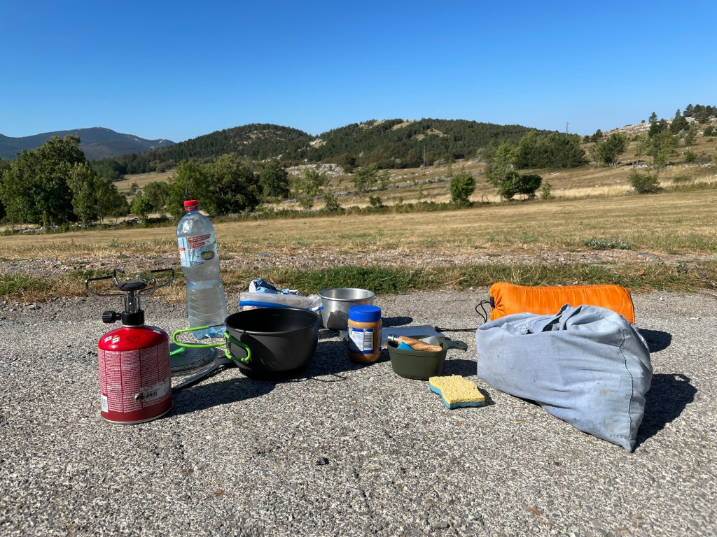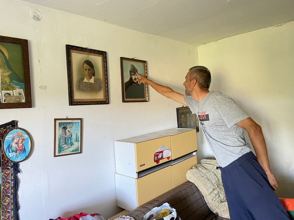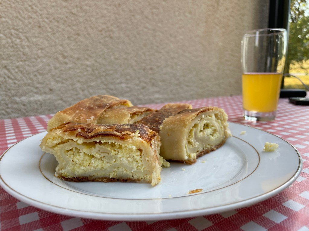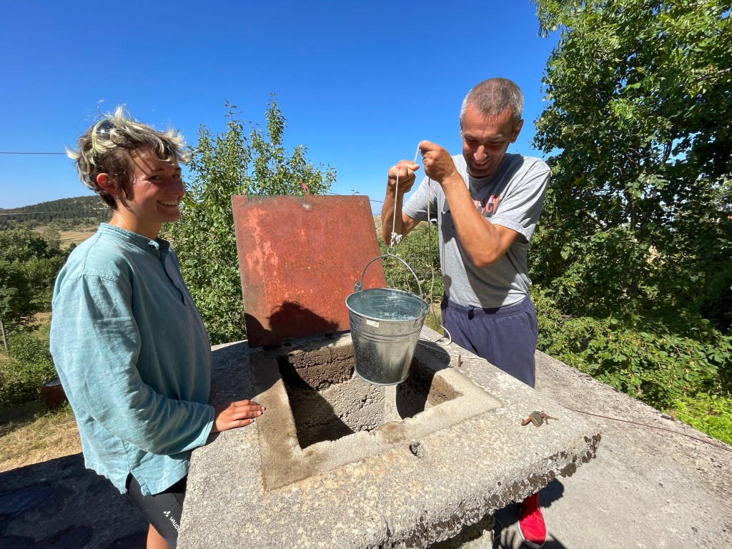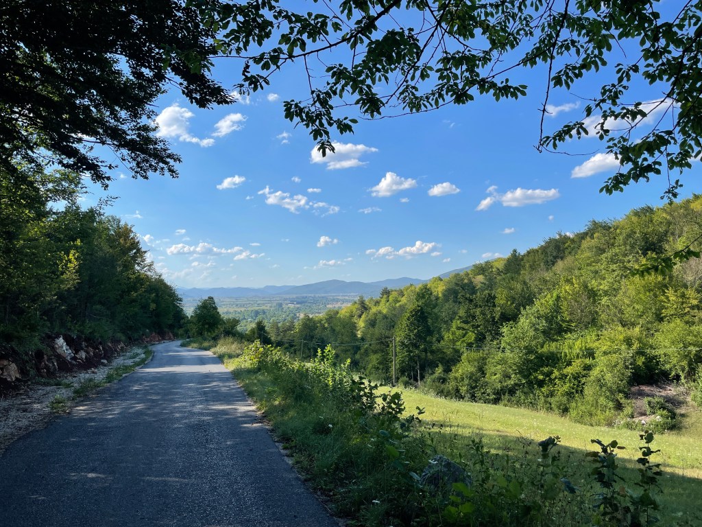 Beim Frühstücksbrei in der Morgensonne lernen wir Mario und seinen kleinen Sohn Andrej kennen. Sie verbringen ein paar Tage im Haus nebenan. Hier oben, zwischen Felsen, windschiefen Kiefern und gelben Wiesenteppichen, lebte einst Marios Großvater. Zusammen mit hunderten, anderen Familien. Es wurden Steinhäuser gebaut, Landwirtschaft betrieben. Doch dann kam der Zweite Weltkrieg. Das Gebiet wurde zum Schlachtfeld. Soldaten plünderten, die Bewohner flohen – und kamen meistens nie wieder zurück. Ihre Häuser vereinsamten und fielen in sich zusammen. Aber nicht alle. Das Haus von Marios Cousin steht noch. Es ist mehr als 150 Jahre alt. Ohne Wasseranschluss, dafür mit Mauern so breit wie eine Ellbogenlänge. Mario führt uns herum. Es riecht nach „Großeltern“. Bei einem kleinen Weinchen (um 10:30 Uhr) erzählt er uns seine Lebensgeschichte: schwerer Autounfall, Trennung nach 17 Jahren Ehe, Frührente, Sohn als Hoffnungsträger. Das Haus seines Großvater will er renovieren, aber es wurde enteignet. Seit vier Jahren kämpft er dafür, dass er es zurückbekommt. „You can have land“, sagt er. Wir tauschen Emails aus. Dann will er noch ein Photo mit zwei beautiful girls (im vollgeschwitzten Radlerdress).