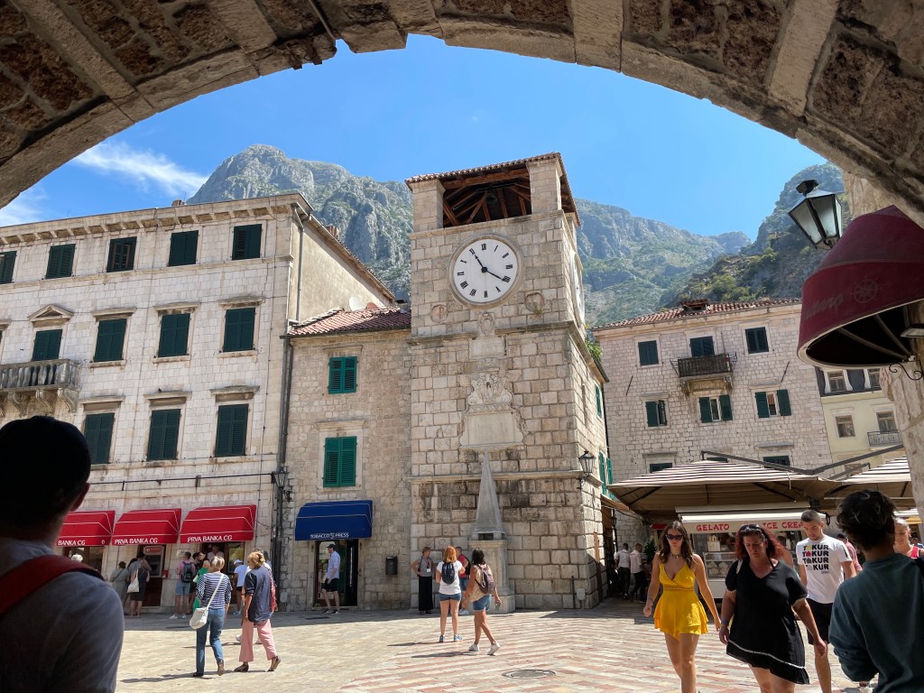 Zurück in Kotor: In der mittelalterlichen Stadt hatten 400 Jahre lang Venezianer das Sagen. Die gekachelten Dächer, die verzierten Säulen, die kopfsteingepflasterten Gassen. Ja, wir könnten auch in Italien sein. Viel zu entdecken, aber wir wollen weiter.