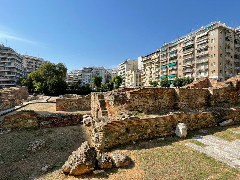 Der Spaziergang durch Thessaloniki ist eine Zick-Zack-Reise durch die Jahrhunderte. Archäologische Schmuckstücke des römischen Kaisers Galerius neben schickem Plattenbau. Mittelalterliche Befestigungsanlagen neben LED-Straßenlaternen. Ich mag ja solche Clashs.