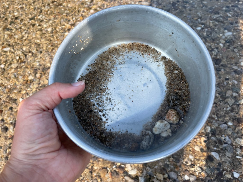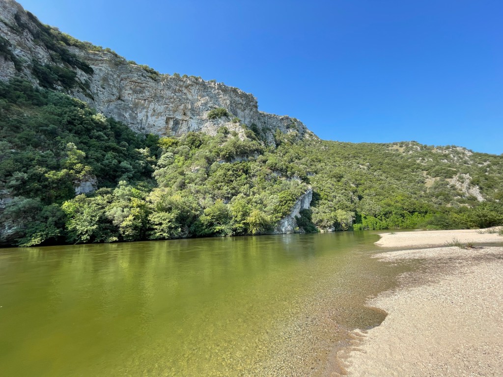 Entdeckt haben wir Nestos mithilfe der App „Park4Night“. Nach der Tour gestern und heute nach dem Aufwachen habe ich mich direkt in diesen flüssigen Kühlschrank gelegt. So belebend! Auch als Spülschwamm ist der Fluss geeignet. Einfach Sand in die Alu-Schale schütten, bisschen verreiben und schwups ist er weg: der angebrannte Reis.