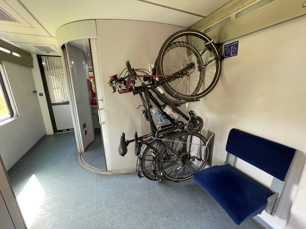 Die Nacht war ok. Bisschen zu oft Pippi. Der Tee hat wohl den Exit-Bereich eingefordert. Sonst einwandfrei. Liegt sich gut. Der nächste Tag: Augen reiben, strecken und wow, was für eine Landschaft. Felsen, Schluchten, zackige Gipfel. Keine Häuser, keine Menschen. Das Zugfenster umrahmt jeden Blick. Die Bilder könnte man direkt an die Wand nageln. Ich spüre: Diese Zugfahrt ist etwas ganz Besonderes. Der ohnehin ausgebuchten Schwarzmeerfähre weine ich keinen einzigen Tropfen hinterher. Es lebe die Eisenbahnromantik!