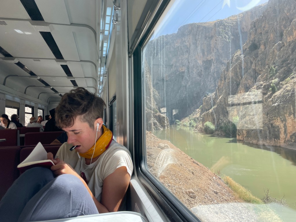 Der Dogu Ekspresi. Eine Hommage an die Gemählichkeit – auf Schienen. Die Diesellok mit den weißen Waggons und dem blauen, gewölbten Dach tuckert in 26 Stunden von West nach Ost. Mit höchstens 80 km/h über das anatolische Hochland und am Fluss Euphrat entlang.
