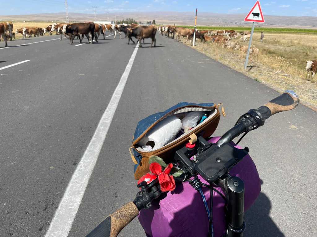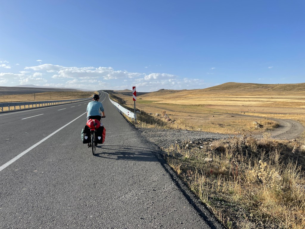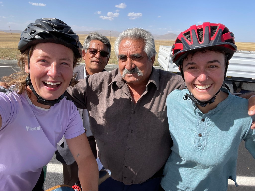 Noch ganz beduselt von dieser stürmischen Begegnung rollen wir tatsächlich nach Arpaçay. Die Leute, fast nur Männer, schauen uns an wie Außerirdische. Die Gegend ist sehr ländlich, muss man dazu sagen. Viele Frauen können gar nicht radfahren. Daher sind dann gleich zwei Ladies mit Bikes in einer Kategorie mit weißen Rehen. Ein seltenes Naturschauspiel!