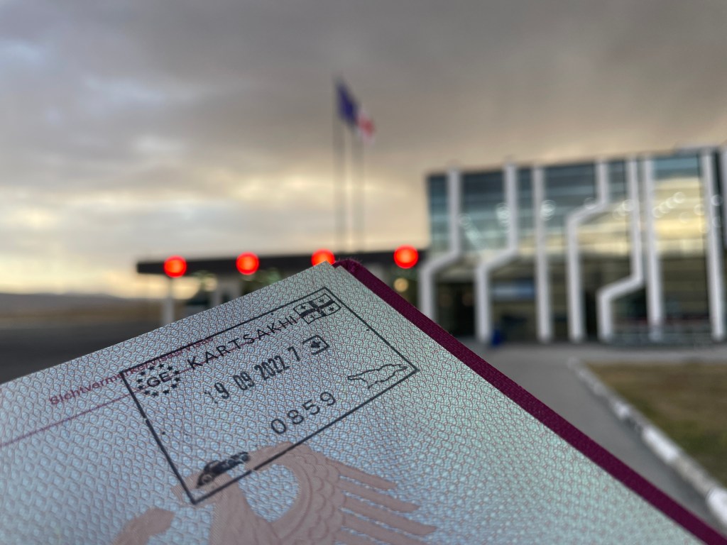 Ein kleiner, rechteckiger Farbfleck in meinem Reisepass. Der Stempel, der sagt: Du bist in Georgien! Nach so viel bergauf und bergab. Nach fast 4.000 Kilometern kreuz und quer durch Europa. Nach so vielen Zufällen und Glücksmomenten. Ich bin noch ganz durcheinander vor Freude.