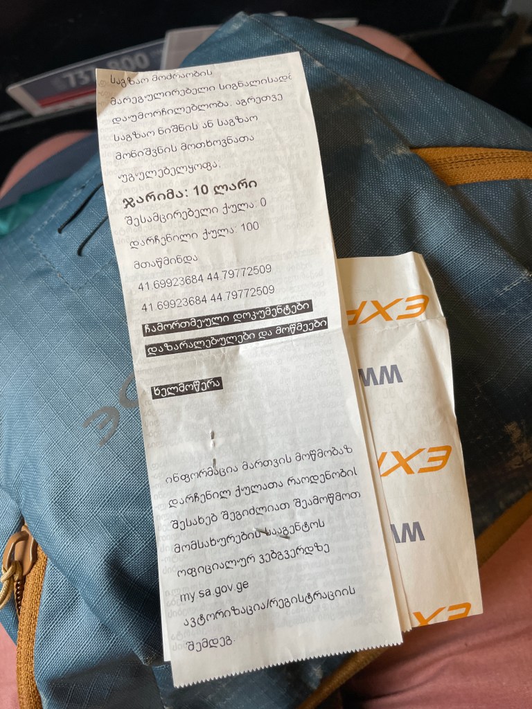 This is the end: die letzten Stunden in Tiflis. Und als Krönung noch mit den Bullen angelegt. Oli und ich sind über eine vierspurige Straße geflitzt. Zu Fuß! Hochgradig kriminell!! Das muss bestraft werden. Dachte sich wohl der Polizist, der uns inflagranti erwischt und alles mit Bodycam dokumentiert hat. „Passports“ (!!!) raunzt die schmallippige Uniform. Wir, total perplexe Schäfchen und natürlich Verbrecher, rücken unsere Chipkarten raus und warten. Der Bulle verschwindet im Wagen. Tippt was ein. Mein Herz beginnt, in einen Techno-Beat überzugehen. Passiert immer, wenn ich mich ungerecht behandelt fühle. Ich hole zum Gegenangriff aus. Photographiere das Kennzeichen des Polizeiautos. Will den Namen meines Gegenübers wissen. Diskutiere. Gestikuliere! Woher sollen wir denn auch wissen, dass man die Unterführung nehmen soll? Nix Schilder! Der Strafzettel: einfach nur absurd, kleinkariert und absolut ungerechtfertigt. Bußgeld nur 10 Lari, also etwas mehr als drei Euro. Aber es geht hier ums Prinzip! Im Stechschritt heizen wir zur nächsten Polizeiwache. Immer wieder überraschend, wieviel Kilojoule Energie durch Wut entfacht werden. Zisch!