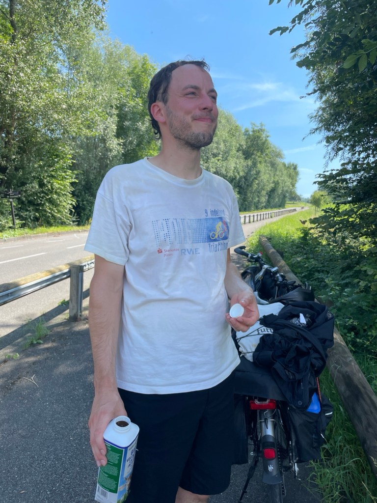 Der nächste Morgen gehört den frühen Vögeln. Um 9:30 Uhr hocken wir schon auf den Bikes. Große Ziele heute. Erst Genf, dann Annecy in der Schweiz. 100 Kilometer, 1.000 Höhenmeter fast. Vorbei an erhabenen Landgütern, Weinreben und insgesamt sehr viel Reichtum. Eine fünfminütige Recherche ergab: Etwa jeder sechste Mensch in der Schweiz ist Millionär. Wir nicht. Für zehn Franken holen wir uns ein Hühnchen-Sandwich bei einem Libanesen in Genf. Dann kommt die schwerste Etappe. Viel bergauf und viel Sonne.