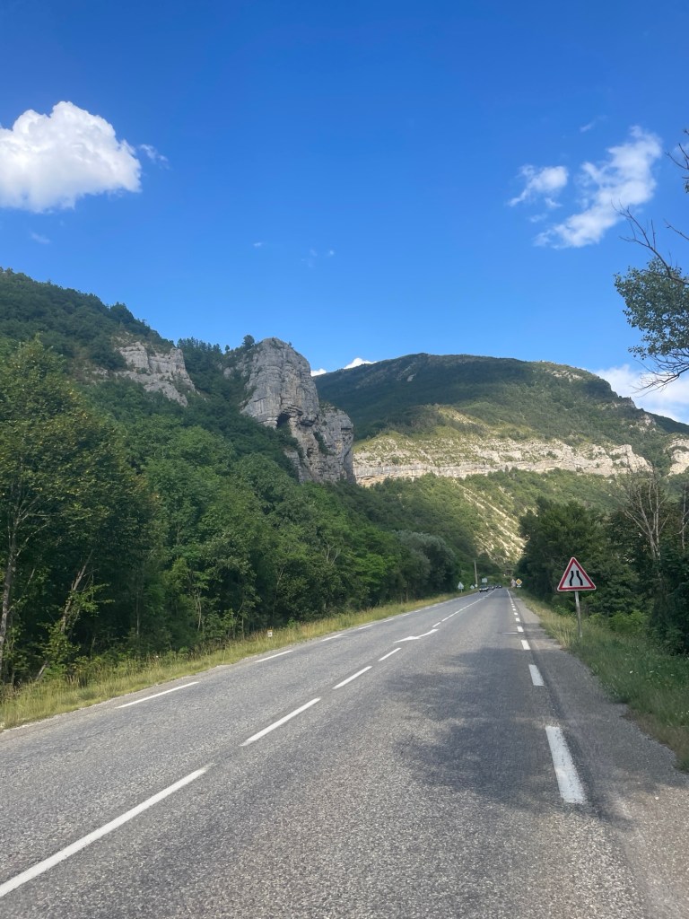 Morgens halb 10 in der Region Auvergne-Rhône-Alpes: Wir sind klitschnass. Schweißengel statt Schneeengel. Tausendvierhundertneunzig Höhenmeter wollen wir heute wegbürsten. Die Tour de France-Leute? Alles Pussies (was natürlich nicht stimmt). Denn wir fahren mit unserem Bett, Kleiderschrank, Badezimmer und unserer Küche durch die Gegend. Nix Rennrad, sondern Stahlgerüst. Zum Glück sind uns die Himmelsgötter wohlgesonnen. Unter ihren Füßen eine dichte Daunendecke. Erst gegen späteren Mittag kämpft sich die Sonne durch.