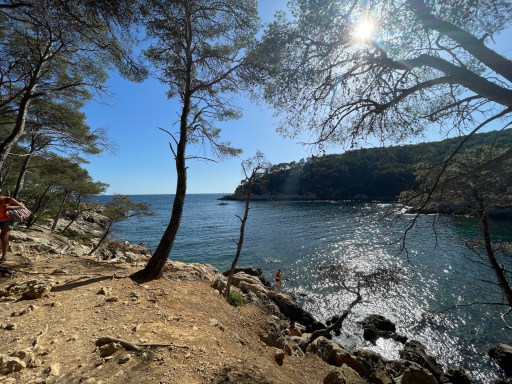 Mit vollem Bauch und leeren Taschen rasen wir zum nächsten Strand. Geht nur schussrunter, zu den Calanques. Felsige Buchten mit Grillen-Konzert. Ganz viel Naturschönheit! Micha und ich tauchen unsere Kalk-Körper direkt ins Wasser. Leichte Wellen, sehr viel Salz. So traurig, dass er morgen wieder nach Deutschland fährt. Alles so weit weg schon!