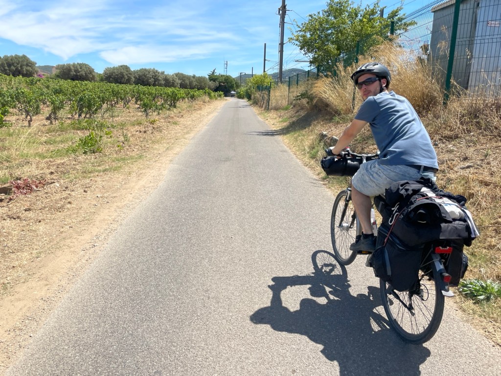 Bleiben wir aber erstmal beim Hochdruckgebiet: noch einmal zusammen in den Pool steigen, in Liegestühlen Müsli runterknuspern und sich mit Zahnputzschaum vorm Mund zulächeln. Kleine Glücksmomente. Gepaart mit einer wohl überlegten Inventur meiner Radtaschen. Was fliegt raus, was bleibt? Zwei T-Shirts, eine Hose, eine Regenhose, ein Teller und die mitgenommene Warnweste dürfen wieder nach Freiburg reisen. Neu an Bord: Kabelbinder, ein Feuerzeug, ein weiterer Anzünder, eine Wäscheleine und Einweghandschuhe. Alles Zeugs von Micha. Nicht schwer und dazu noch praktisch.