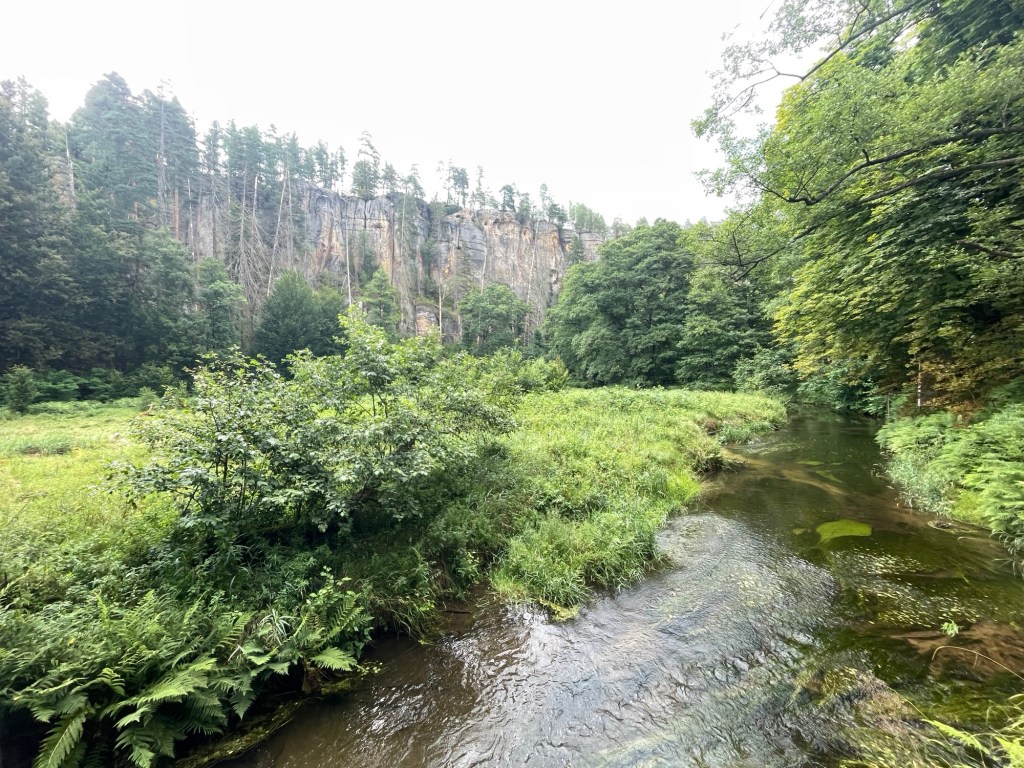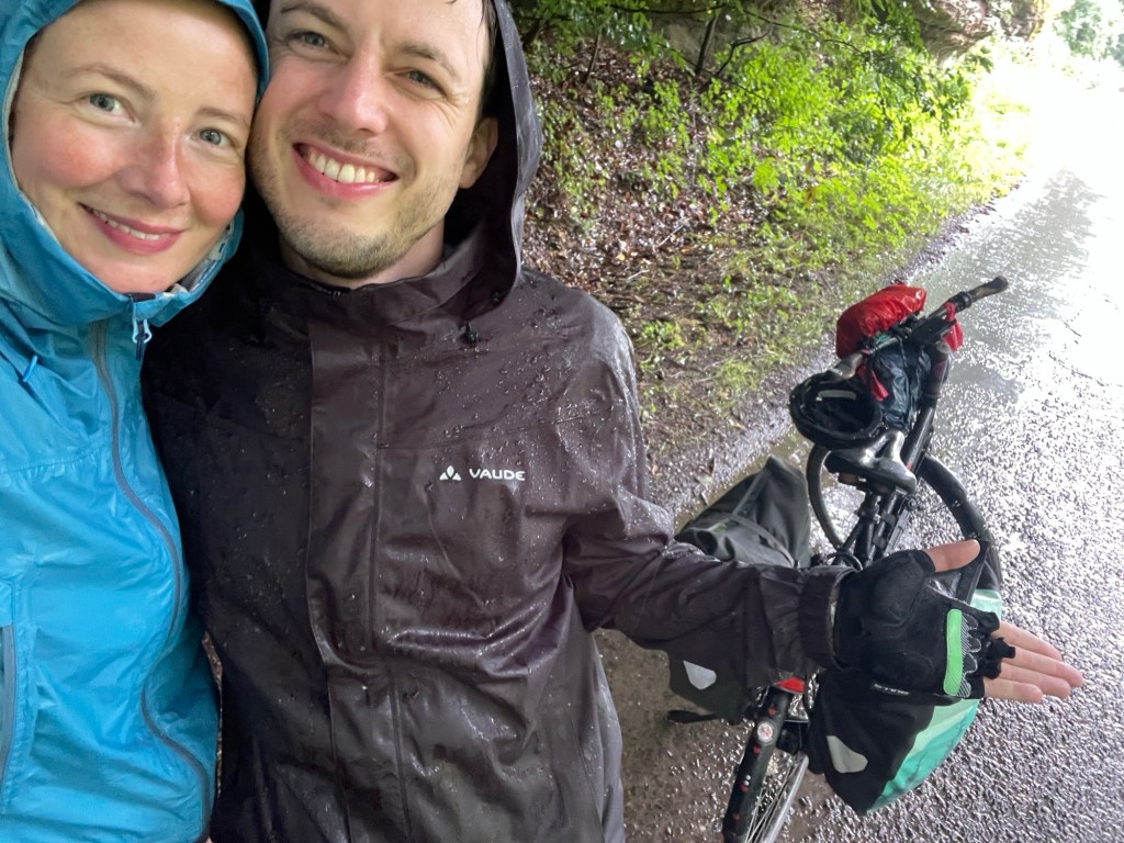 Mit Kardamon-Fahne strampeln wir weiter. Es wird grüner und hügeliger. Felsen wie gestapelte Pancakes. Die sächsische Schweiz klopft an. Wir verlassen die Elbe und tauchen in den Wald ein. Es donnert und blitzt. Regen und Wind schauen vorbei (keine Sorge, Mama, Unterhemd ist am Start).